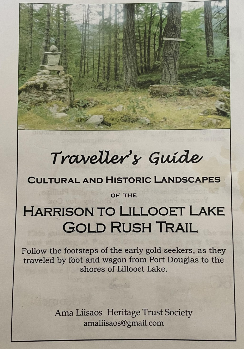This booklet is a cultural and historic guide that will greatly improve your visit in the area. Along with many maps and photographs, the guide includes places of interest and advice. Today, the road is a good quality gravel logging road with yellow kilometre signs all along the way; take note of these as you travel- there is very little cell or internet coverage. Travellers may meet large vehicles, occasionally sight wildlife, and experience a glimpse back over 150 years ago. Recently, signage highlighting some of the historic stops have been erected by local indigenous communities.